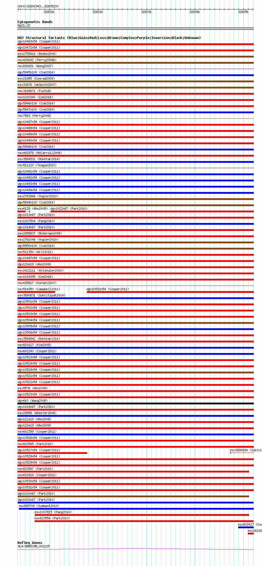 Variant DetailsVariant: dgv1021n67 | Internal ID | 22782004 | | Landmark | | | Location Information | | | Cytoband | 6p21.32 | | Allele length | | Assembly | Allele length | | hg38 | 4858 | | hg19 | 4858 | | hg18 | 4858 |