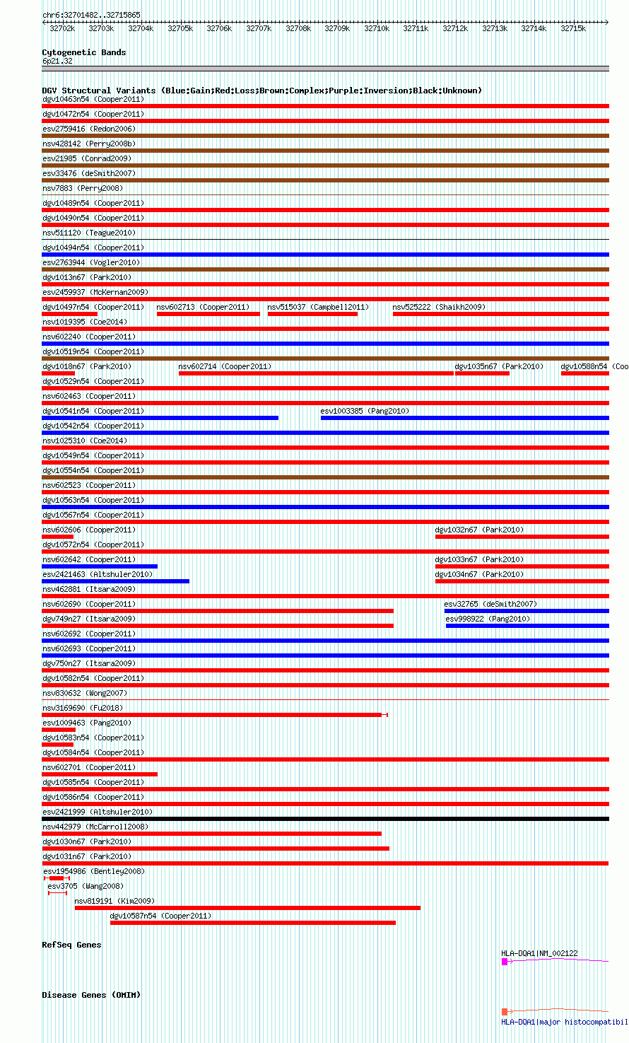 Variant DetailsVariant: dgv1031n67 | Internal ID | 22782014 | | Landmark | | | Location Information | | | Cytoband | 6p21.32 | | Allele length | | Assembly | Allele length | | hg38 | 14384 | | hg19 | 14384 | | hg18 | 14384 |
