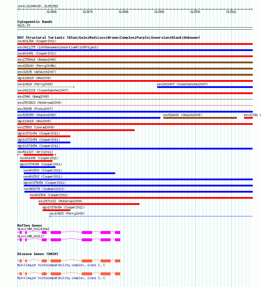Variant DetailsVariant: dgv10373n54| Internal ID | 22778268 | | Landmark | | | Location Information | | | Cytoband | 6p21.33 | | Allele length | | Assembly | Allele length | | hg38 | 6544 | | hg19 | 6544 | | hg18 | 6544 |