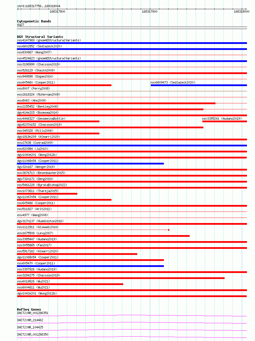 Variant DetailsVariant: dgv1042e201| Internal ID | 22760400 | | Landmark | | | Location Information | | | Cytoband | 6q27 | | Allele length | | Assembly | Allele length | | hg38 | 249 | | hg19 | 249 |