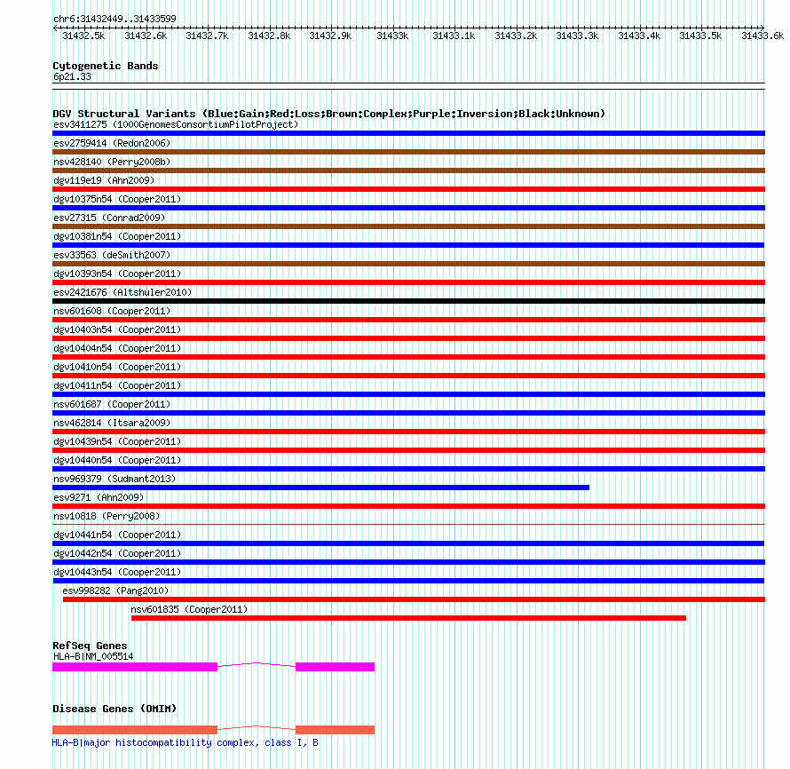 Variant DetailsVariant: dgv10443n54| Internal ID | 22778338 | | Landmark | | | Location Information | | | Cytoband | 6p21.33 | | Allele length | | Assembly | Allele length | | hg38 | 1151 | | hg19 | 1151 | | hg18 | 1151 |