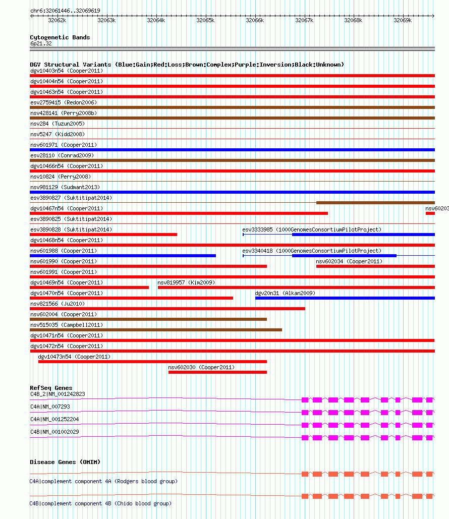 Variant DetailsVariant: dgv10471n54| Internal ID | 22778366 | | Landmark | | | Location Information | | | Cytoband | 6p21.32 | | Allele length | | Assembly | Allele length | | hg38 | 8174 | | hg19 | 8174 | | hg18 | 8174 |