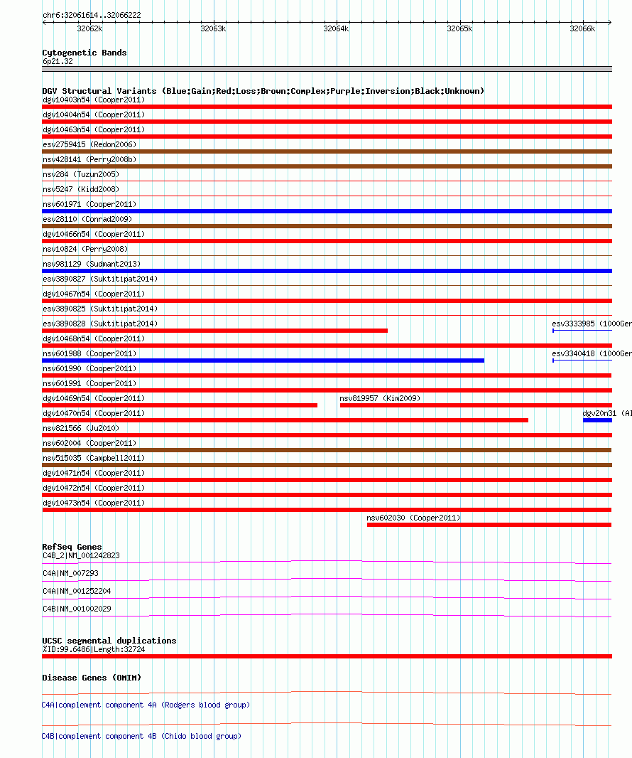 Variant DetailsVariant: dgv10473n54| Internal ID | 20143897 | | Landmark | | | Location Information | | | Cytoband | 6p21.32 | | Allele length | | Assembly | Allele length | | hg38 | 4609 | | hg19 | 4609 | | hg18 | 4609 |
