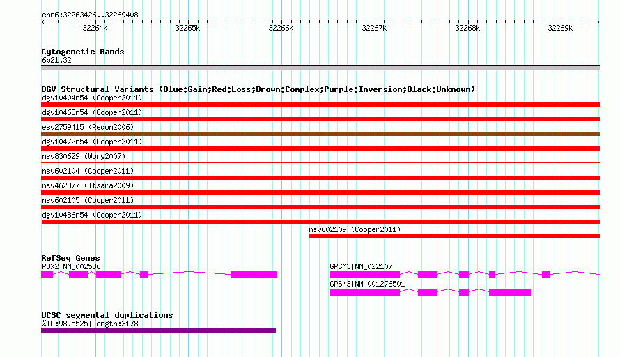 Variant DetailsVariant: dgv10486n54| Internal ID | 20143910 | | Landmark | | | Location Information | | | Cytoband | 6p21.32 | | Allele length | | Assembly | Allele length | | hg38 | 5983 | | hg19 | 5983 | | hg18 | 5983 |