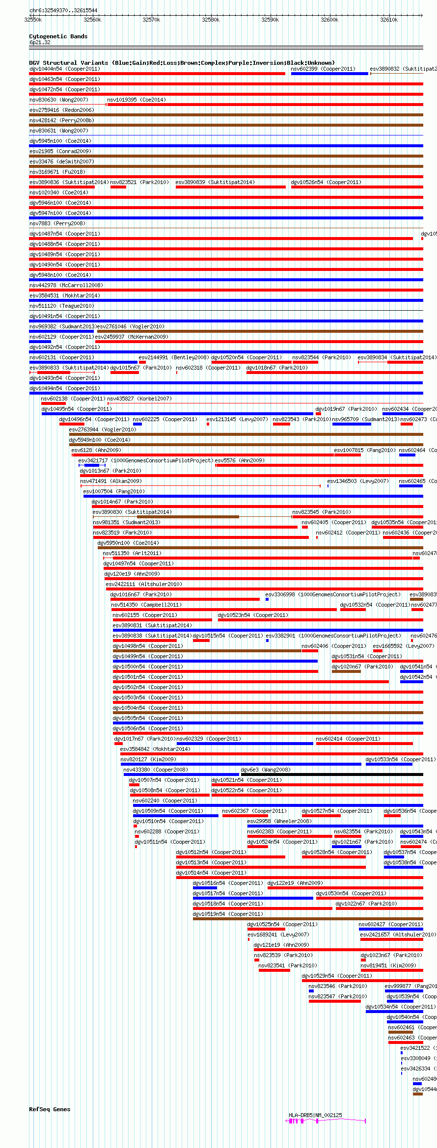 Variant DetailsVariant: dgv10493n54| Internal ID | 22778388 | | Landmark | | | Location Information | | | Cytoband | 6p21.32 | | Allele length | | Assembly | Allele length | | hg38 | 66175 | | hg19 | 66175 | | hg18 | 66175 |