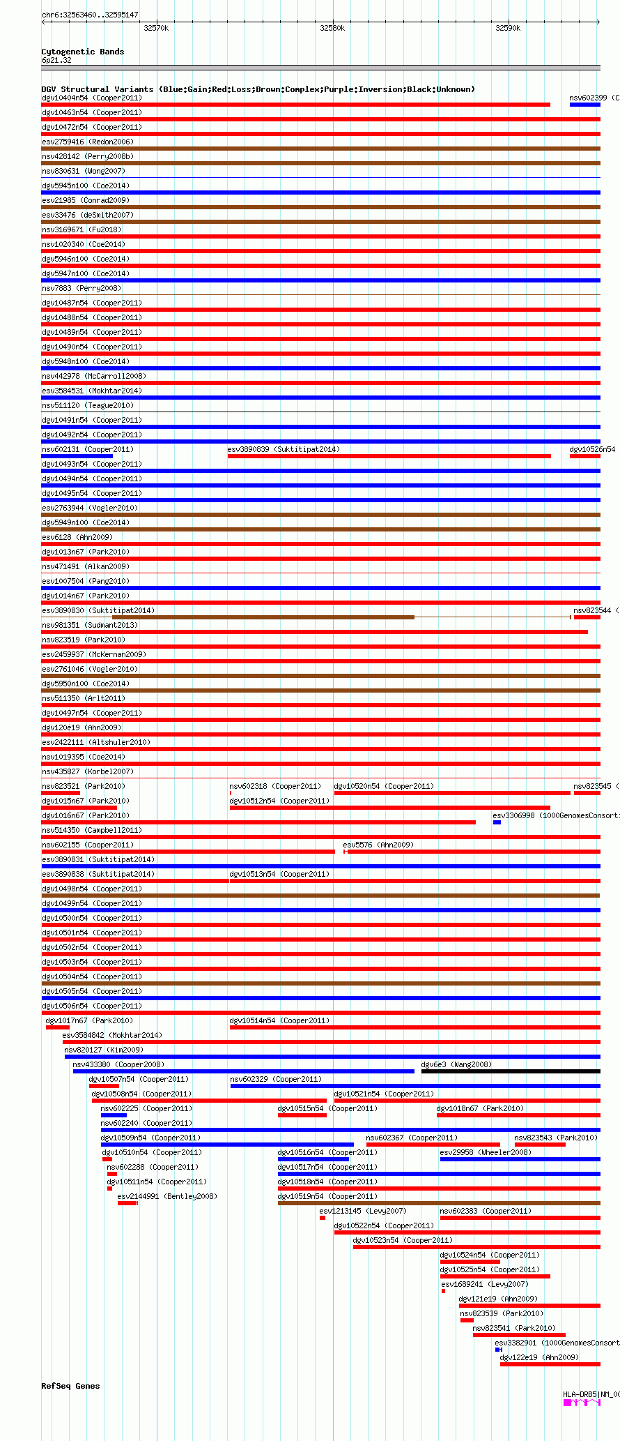 Variant DetailsVariant: dgv10498n54| Internal ID | 22778393 | | Landmark | | | Location Information | | | Cytoband | 6p21.32 | | Allele length | | Assembly | Allele length | | hg38 | 31688 | | hg19 | 31688 | | hg18 | 31688 |