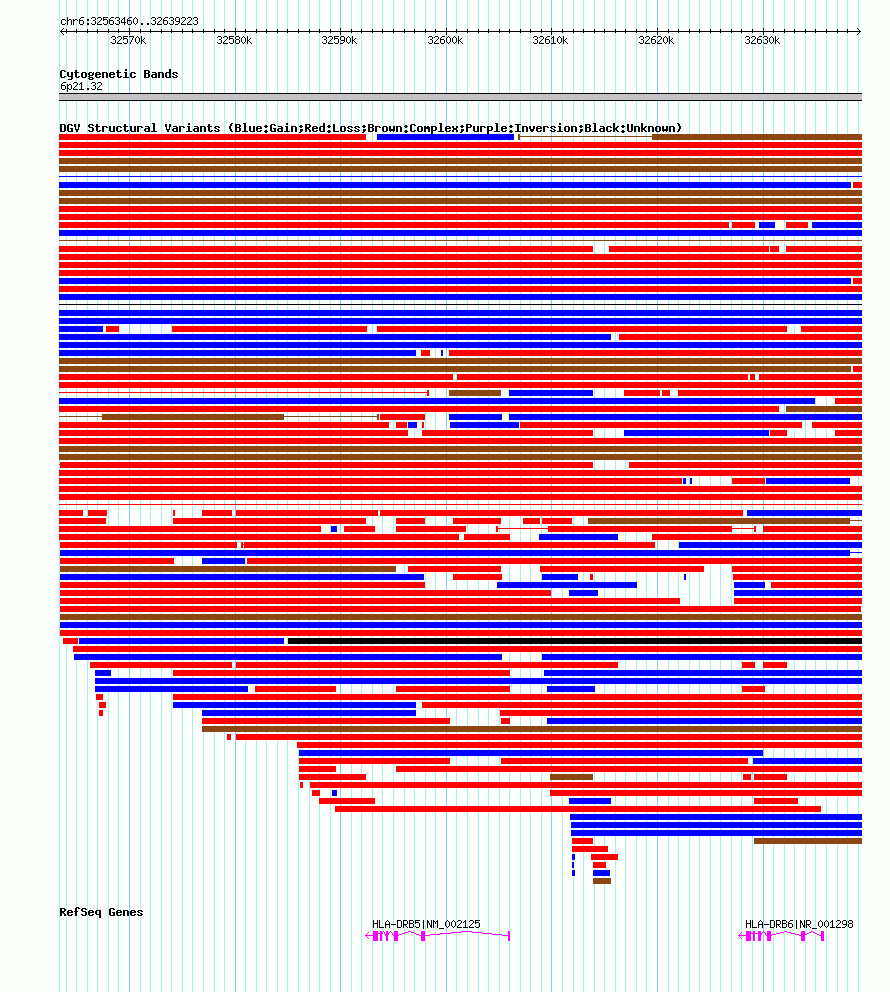 Variant DetailsVariant: dgv10503n54| Internal ID | 22778398 | | Landmark | | | Location Information | | | Cytoband | 6p21.32 | | Allele length | | Assembly | Allele length | | hg38 | 75764 | | hg19 | 75764 | | hg18 | 75764 |