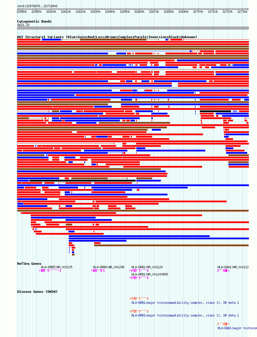 Variant DetailsVariant: dgv10519n54| Internal ID | 22778414 | | Landmark | | | Location Information | | | Cytoband | 6p21.32 | | Allele length | | Assembly | Allele length | | hg38 | 157029 | | hg19 | 157029 | | hg18 | 157029 |