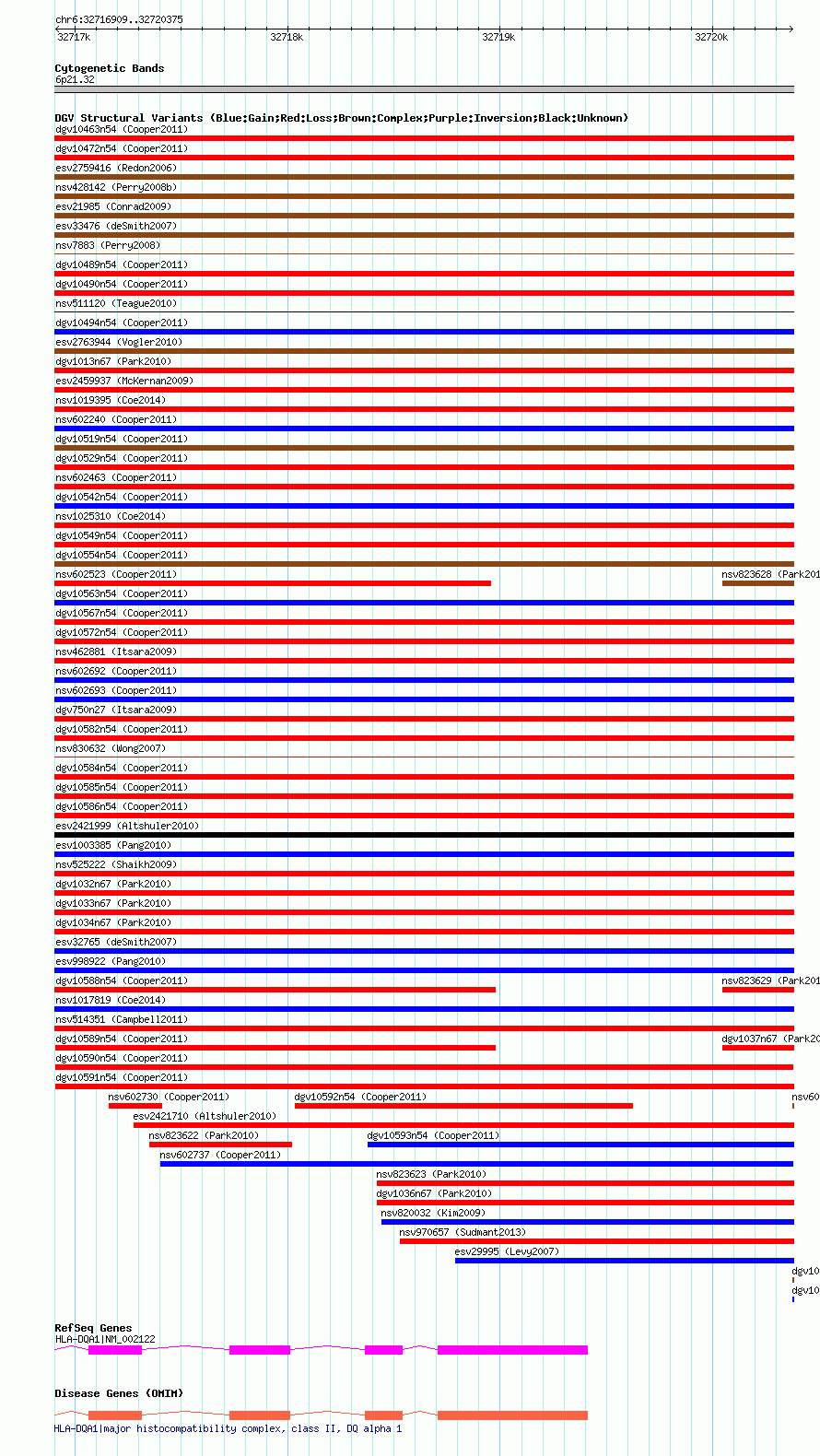 Variant DetailsVariant: dgv10590n54| Internal ID | 22778485 | | Landmark | | | Location Information | | | Cytoband | 6p21.32 | | Allele length | | Assembly | Allele length | | hg38 | 3467 | | hg19 | 3467 | | hg18 | 3467 |