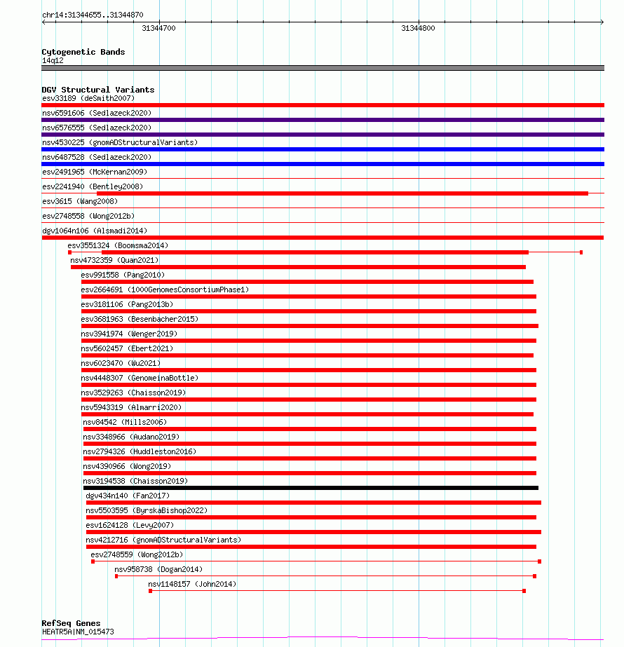 Variant DetailsVariant: dgv1064n106| Internal ID | 22794892 | | Landmark | | | Location Information | | | Cytoband | 14q12 | | Allele length | | Assembly | Allele length | | hg38 | 216 | | hg19 | 216 |