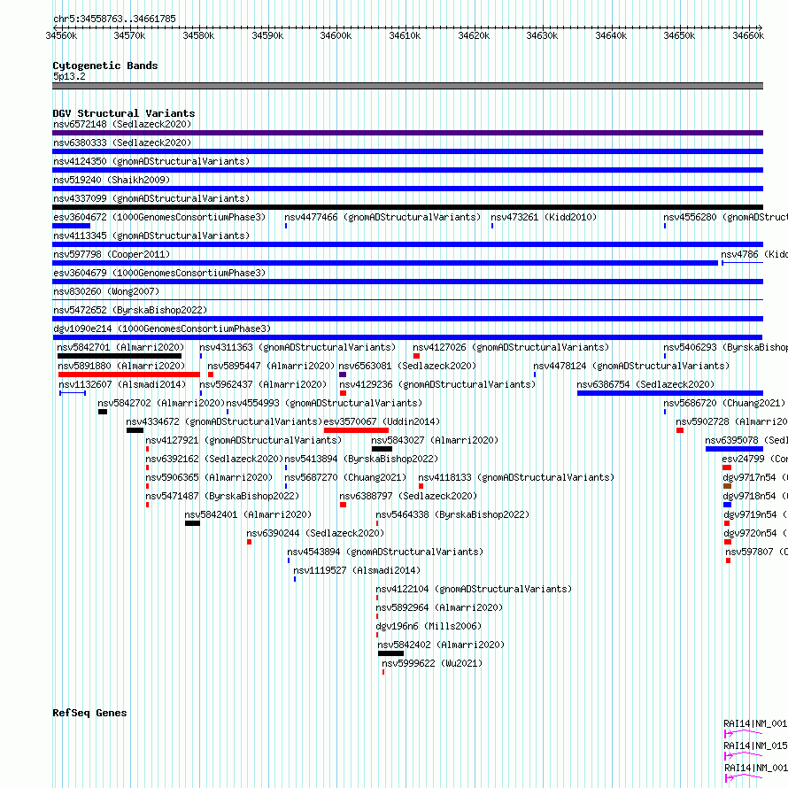 Variant DetailsVariant: dgv1090e214| Internal ID | 22756984 | | Landmark | | | Location Information | | | Cytoband | 5p13.2 | | Allele length | | Assembly | Allele length | | hg38 | 103023 | | hg19 | 103023 |