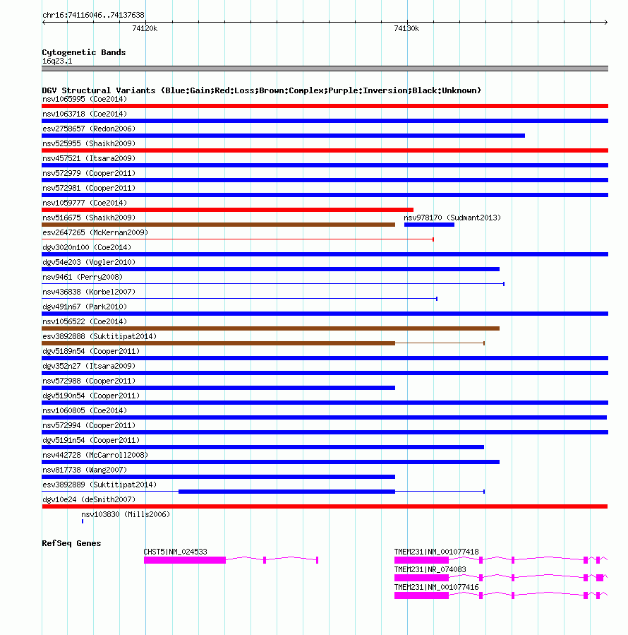 Variant DetailsVariant: dgv10e24 | Internal ID | 20126448 | | Landmark | | | Location Information | | | Cytoband | 16q23.1 | | Allele length | | Assembly | Allele length | | hg38 | 21593 | | hg19 | 21593 | | hg18 | 21593 | | hg17 | 21593 |