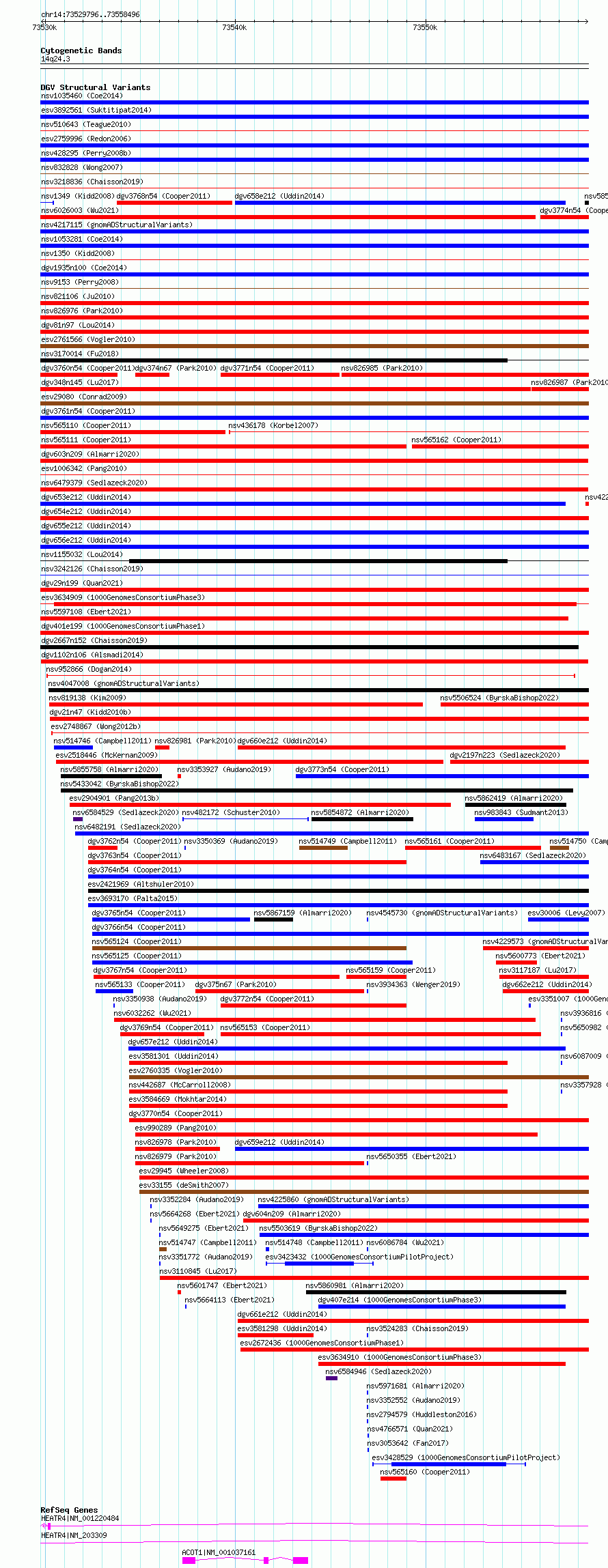 Variant DetailsVariant: dgv1102n106| Internal ID | 22794930 | | Landmark | | | Location Information | | | Cytoband | 14q24.3 | | Allele length | | Assembly | Allele length | | hg38 | 28701 | | hg19 | 28701 |