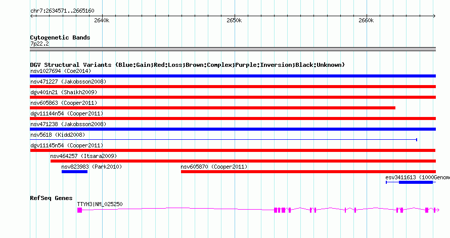 Variant DetailsVariant: dgv11145n54| Internal ID | 22779040 | | Landmark | | | Location Information | | | Cytoband | 7p22.2 | | Allele length | | Assembly | Allele length | | hg38 | 30590 | | hg19 | 30590 | | hg18 | 30590 |