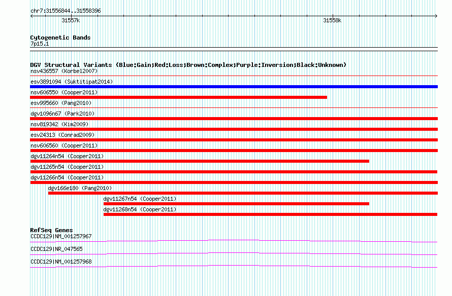 Variant DetailsVariant: dgv11265n54| Internal ID | 22779160 | | Landmark | | | Location Information | | | Cytoband | 7p14.3 | | Allele length | | Assembly | Allele length | | hg38 | 1553 | | hg19 | 1553 | | hg18 | 1553 |