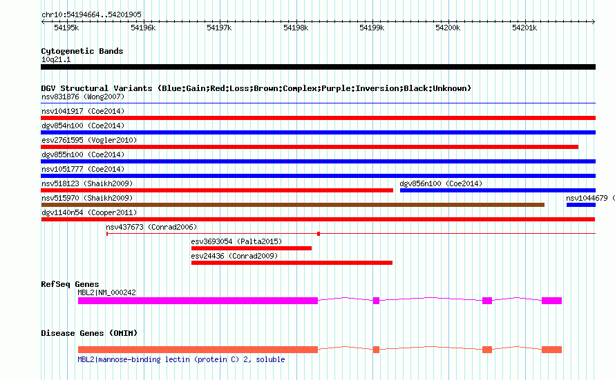 Variant DetailsVariant: dgv1140n54| Internal ID | 22769035 | | Landmark | | | Location Information | | | Cytoband | 10q21.1 | | Allele length | | Assembly | Allele length | | hg38 | 7242 | | hg19 | 7242 | | hg18 | 7242 |