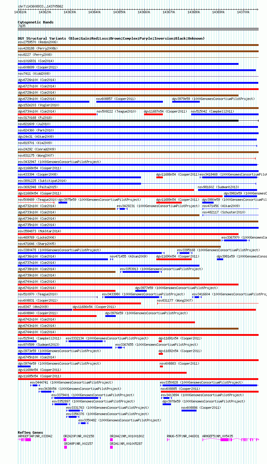 Variant DetailsVariant: dgv11685n54| Internal ID | 22779580 | | Landmark | | | Location Information | | | Cytoband | 7q35 | | Allele length | | Assembly | Allele length | | hg38 | 96930 | | hg19 | 96930 | | hg18 | 96930 |