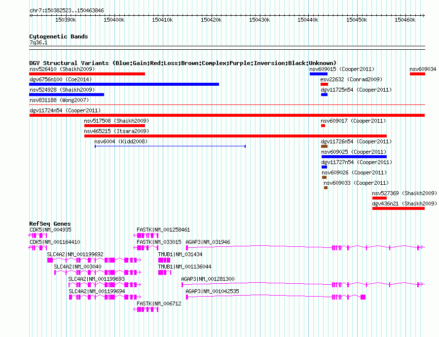 Variant DetailsVariant: dgv11724n54| Internal ID | 20145148 | | Landmark | | | Location Information | | | Cytoband | 7q36.1 | | Allele length | | Assembly | Allele length | | hg38 | 81324 | | hg19 | 81324 | | hg18 | 81324 |