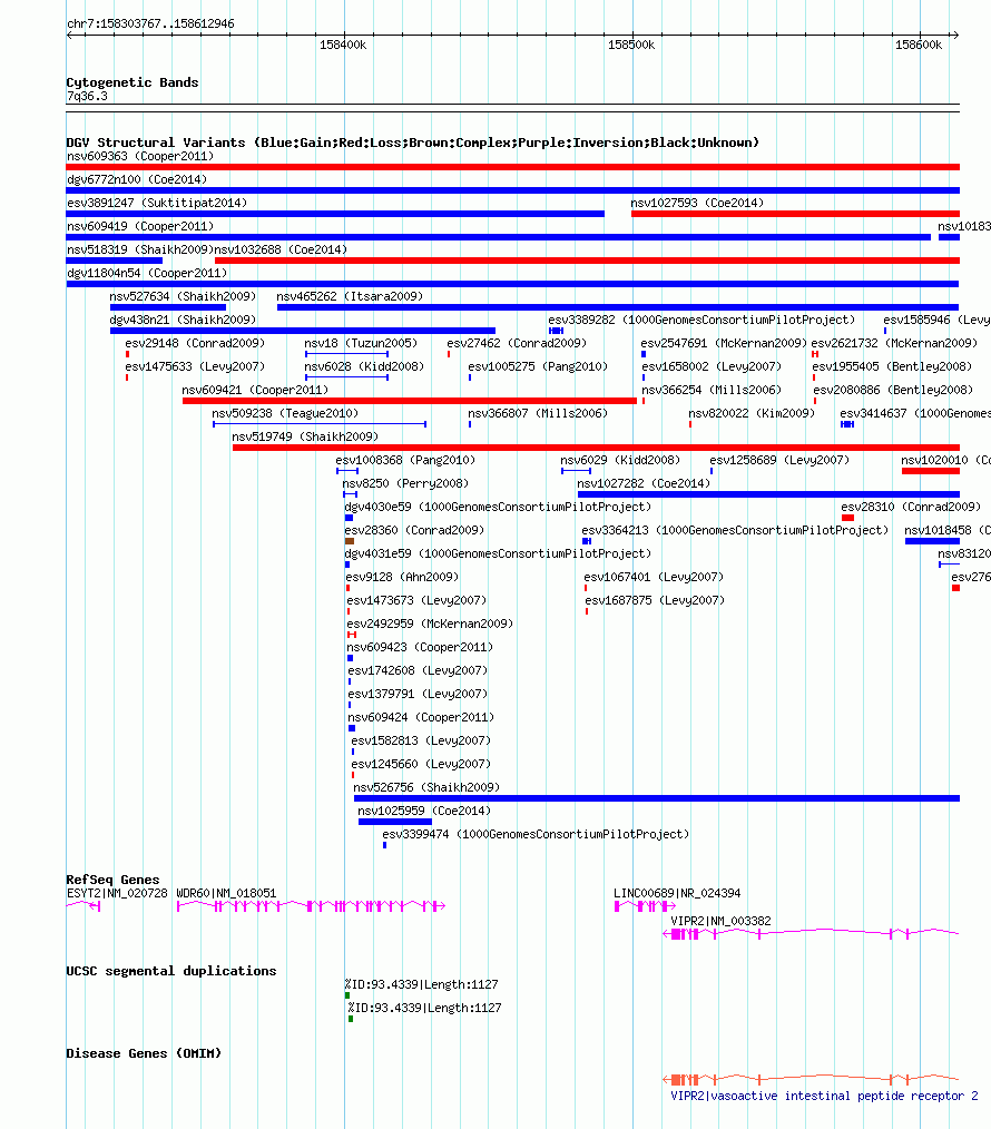Variant DetailsVariant: dgv11804n54| Internal ID | 20145228 | | Landmark | | | Location Information | | | Cytoband | 7q36.3 | | Allele length | | Assembly | Allele length | | hg38 | 309180 | | hg19 | 309180 | | hg18 | 309180 |