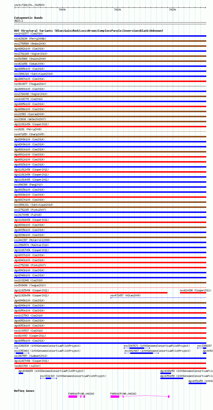 Variant DetailsVariant: dgv11927n54| Internal ID | 22779822 | | Landmark | | | Location Information | | | Cytoband | 8p23.1 | | Allele length | | Assembly | Allele length | | hg38 | 34697 | | hg19 | 34697 | | hg18 | 34697 |