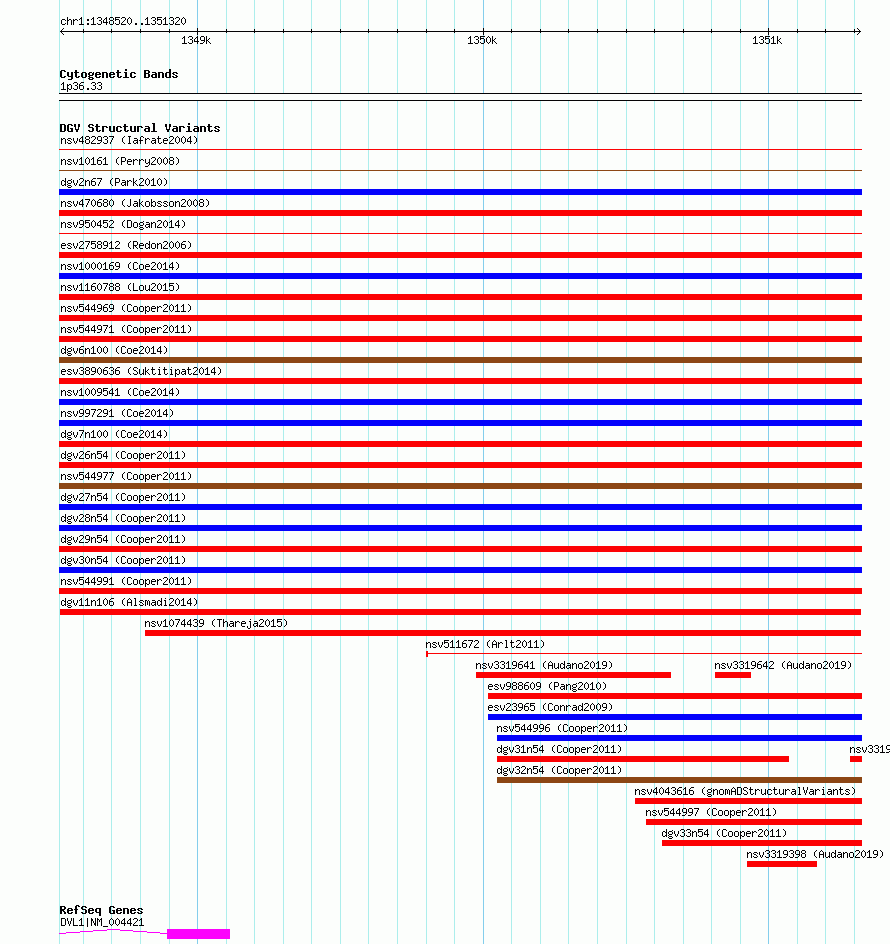 Variant DetailsVariant: dgv11n106| Internal ID | 20159368 | | Landmark | | | Location Information | | | Cytoband | 1p36.33 | | Allele length | | Assembly | Allele length | | hg38 | 2801 | | hg19 | 2801 |