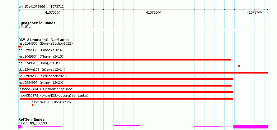 Variant DetailsVariant: dgv1200n106| Internal ID | 22795028 | | Landmark | | | Location Information | | | Cytoband | 15q15.1 | | Allele length | | Assembly | Allele length | | hg38 | 247 | | hg19 | 247 |