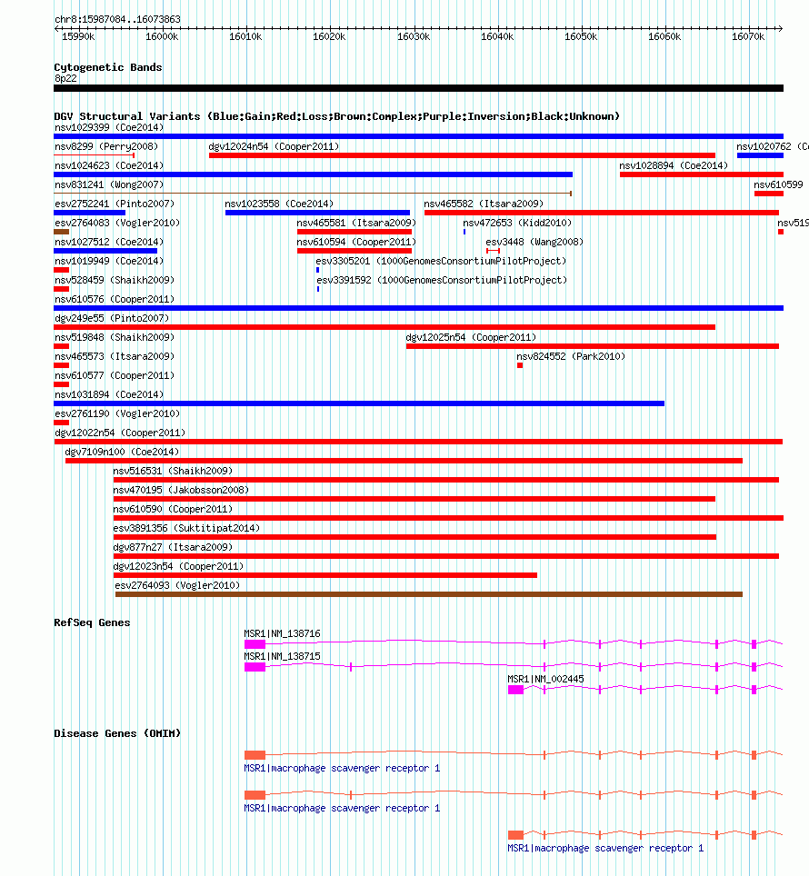 Variant DetailsVariant: dgv12022n54| Internal ID | 22779917 | | Landmark | | | Location Information | | | Cytoband | 8p22 | | Allele length | | Assembly | Allele length | | hg38 | 86780 | | hg19 | 86780 | | hg18 | 86780 |