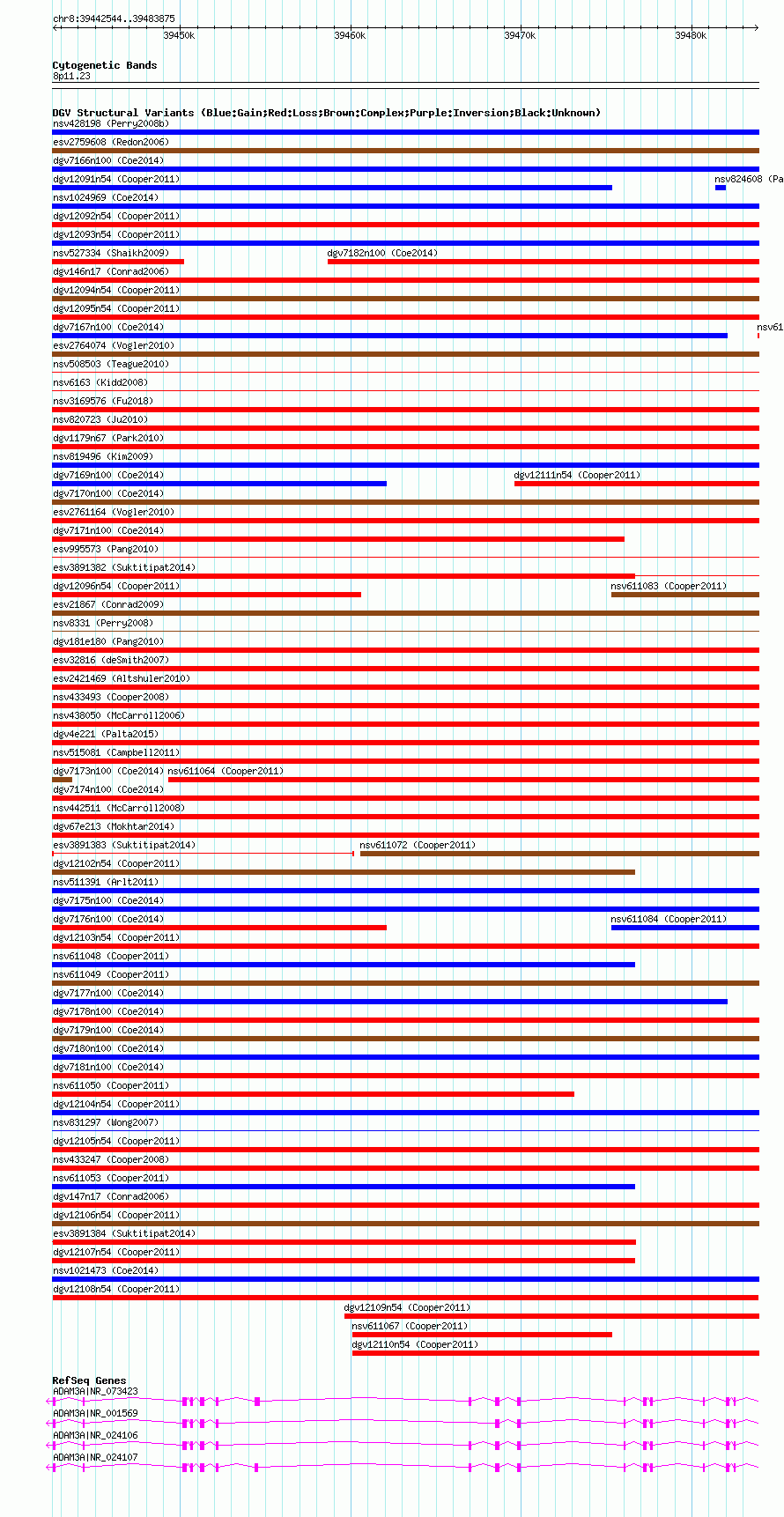 Variant DetailsVariant: dgv12108n54| Internal ID | 22780003 | | Landmark | | | Location Information | | | Cytoband | 8p11.22 | | Allele length | | Assembly | Allele length | | hg38 | 41332 | | hg19 | 41332 | | hg18 | 41332 |