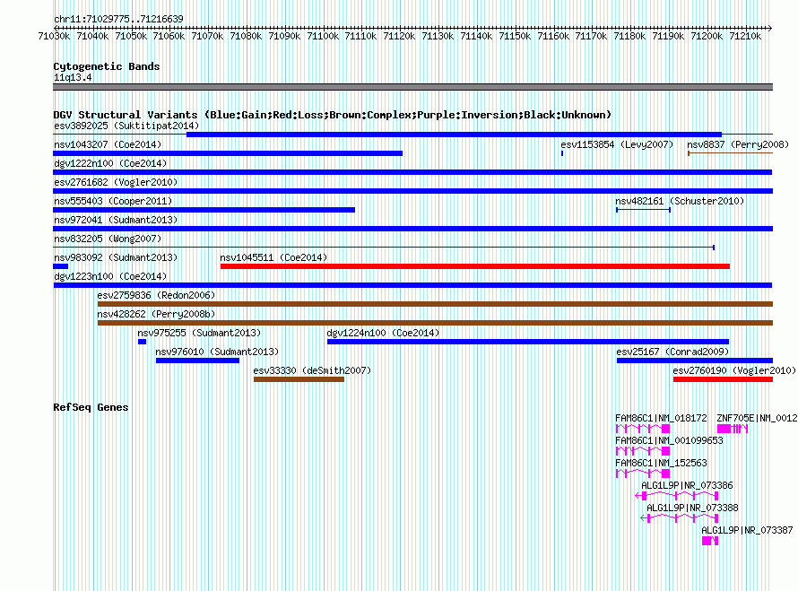 Variant DetailsVariant: dgv1223n100| Internal ID | 22787310 | | Landmark | | | Location Information | | | Cytoband | 11q13.4 | | Allele length | | Assembly | Allele length | | hg38 | 186865 | | hg19 | 186865 | | hg18 | 186865 |