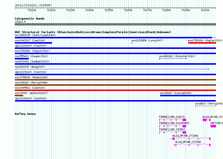 Variant DetailsVariant: dgv1224n100| Internal ID | 22787311 | | Landmark | | | Location Information | | | Cytoband | 11q13.4 | | Allele length | | Assembly | Allele length | | hg38 | 104235 | | hg19 | 104235 | | hg18 | 104235 |