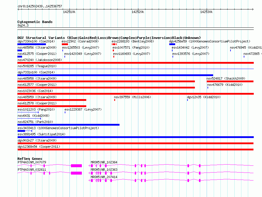 Variant DetailsVariant: dgv12368n54| Internal ID | 20145792 | | Landmark | | | Location Information | | | Cytoband | 8q24.3 | | Allele length | | Assembly | Allele length | | hg38 | 34319 | | hg19 | 34319 | | hg18 | 34319 |