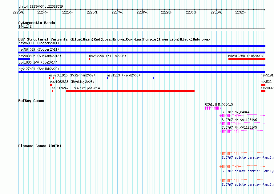 | | Variant Type | CNV gain | | Copy Number | | | Allele State | | | Allele Origin | | | Probe Count | | | Validation Flag | | | Merged Status | M | | Merged Variants | | | Supporting Variants | nsv528804, nsv522569 | | Samples | | | Known Genes | OXA1L, SLC7A7 | | Method | SNP array | | Analysis | Sample-level CNVs | | Platform | GPL6434 | | Comments | | | Reference | Shaikh_et_al_2009 | | Pubmed ID | 19592680 | | Accession Number(s) | dgv127n21