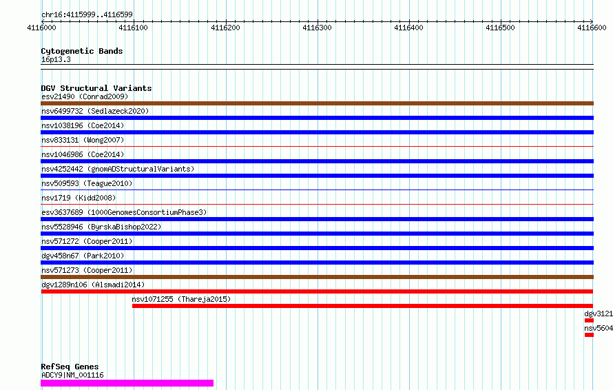 Variant DetailsVariant: dgv1289n106| Internal ID | 22795117 | | Landmark | | | Location Information | | | Cytoband | 16p13.3 | | Allele length | | Assembly | Allele length | | hg38 | 601 | | hg19 | 601 |
