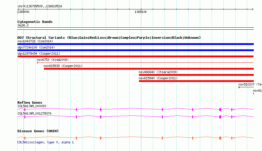 Variant DetailsVariant: dgv12978n54| Internal ID | 22780873 | | Landmark | | | Location Information | | | Cytoband | 9q34.3 | | Allele length | | Assembly | Allele length | | hg38 | 20016 | | hg19 | 20016 | | hg18 | 20016 |