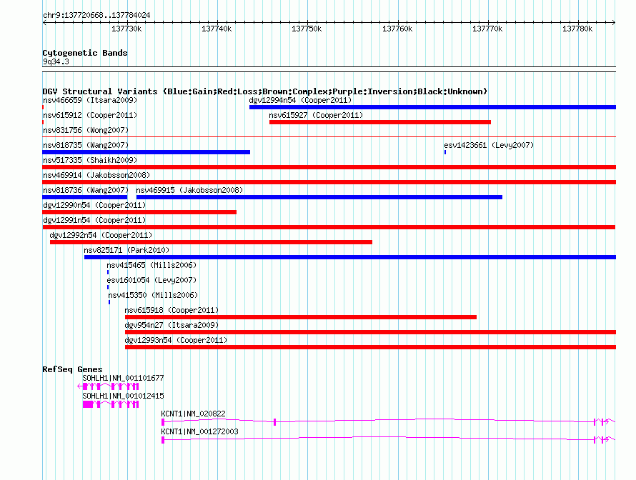 Variant DetailsVariant: dgv12991n54| Internal ID | 20146415 | | Landmark | | | Location Information | | | Cytoband | 9q34.3 | | Allele length | | Assembly | Allele length | | hg38 | 63357 | | hg19 | 63357 | | hg18 | 63357 |