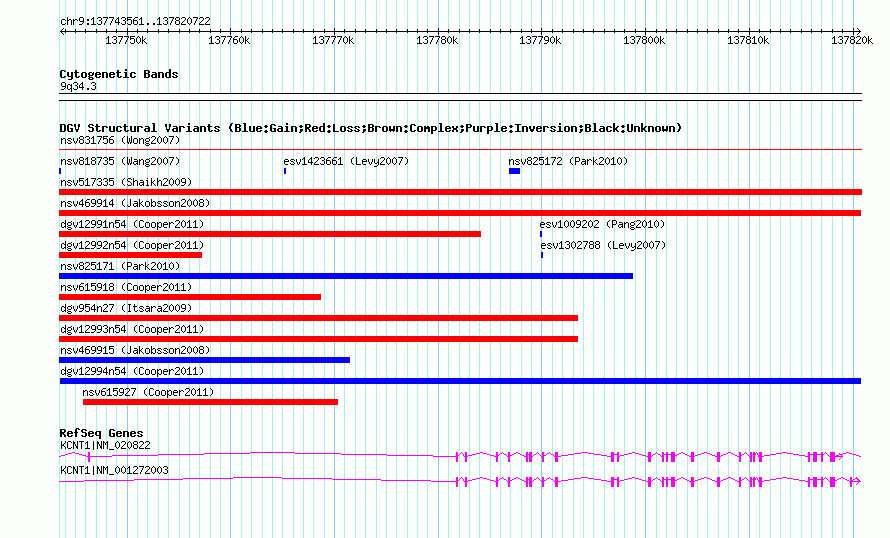 Variant DetailsVariant: dgv12994n54| Internal ID | 20146418 | | Landmark | | | Location Information | | | Cytoband | 9q34.3 | | Allele length | | Assembly | Allele length | | hg38 | 77162 | | hg19 | 77162 | | hg18 | 77162 |