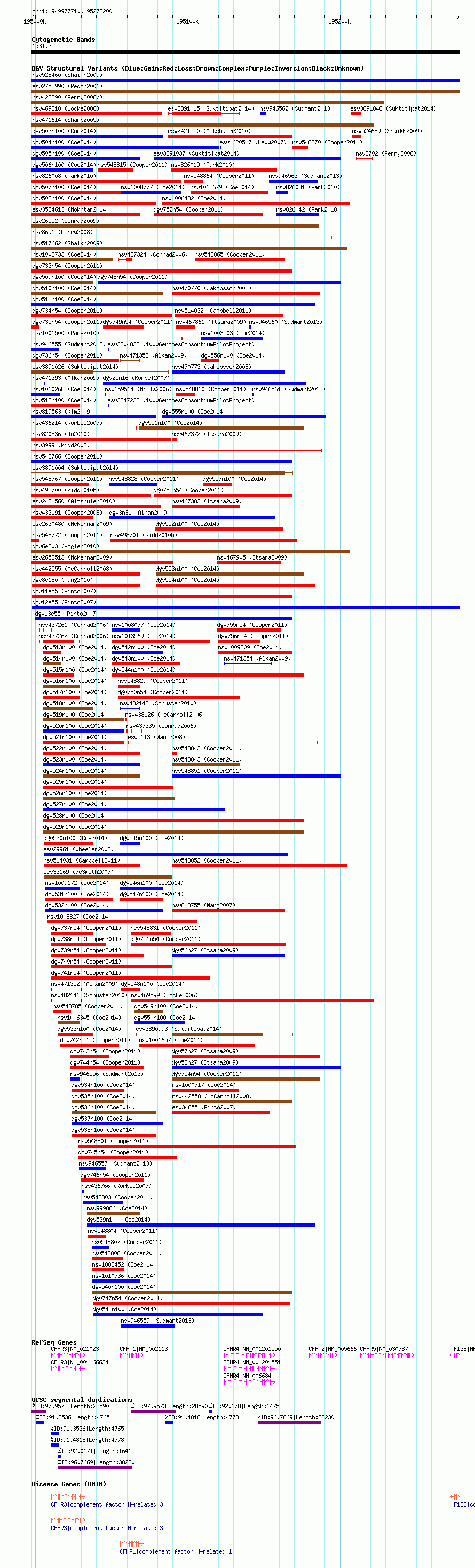 | | Variant Type | CNV gain | | Copy Number | | | Allele State | | | Allele Origin | | | Probe Count | | | Validation Flag | | | Merged Status | M | | Merged Variants | | | Supporting Variants | esv2750822, esv34978 | | Samples | NA11840, SPC_165 | | Known Genes | CFHR1, CFHR2, CFHR3, CFHR4, CFHR5, F13B | | Method | SNP array | | Analysis | | | Platform | Affymetrix Mapping 250K Nsp SNP Array Affymetrix Mapping 250K Sty2 SNP Array | | Comments | | | Reference | Pinto_et_al_2007 | | Pubmed ID | 17911159 | | Accession Number(s) | dgv12e55