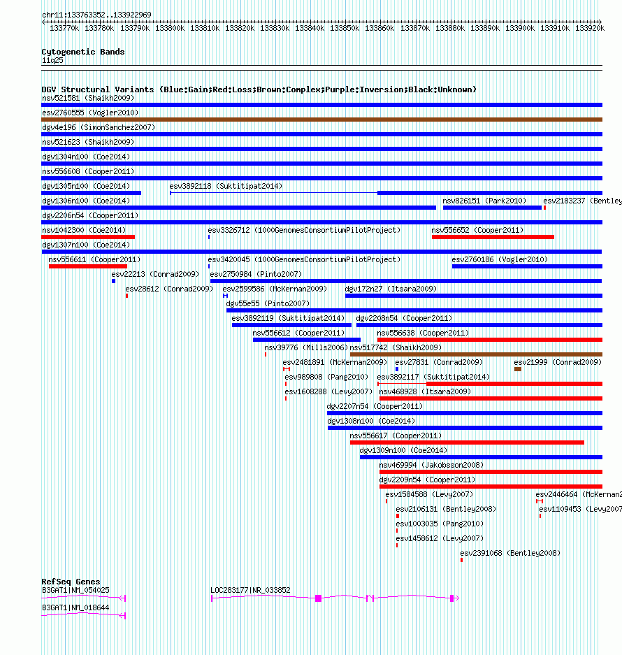 Variant DetailsVariant: dgv1307n100| Internal ID | 20152923 | | Landmark | | | Location Information | | | Cytoband | 11q25 | | Allele length | | Assembly | Allele length | | hg38 | 159618 | | hg19 | 159618 | | hg18 | 159618 |