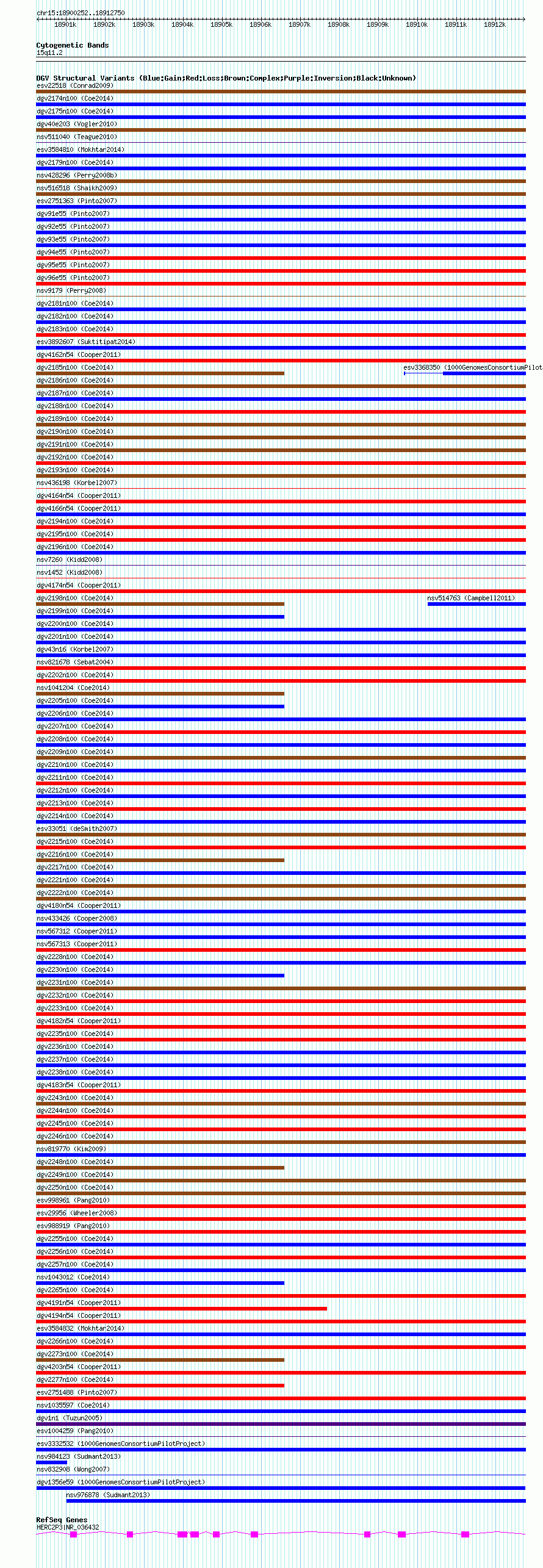 Variant DetailsVariant: dgv1356e59| Internal ID | 22762576 | | Landmark | | | Location Information | | | Cytoband | 15q11.1 | | Allele length | | Assembly | Allele length | | hg38 | 12499 | | hg19 | 12499 | | hg18 | 12499 |