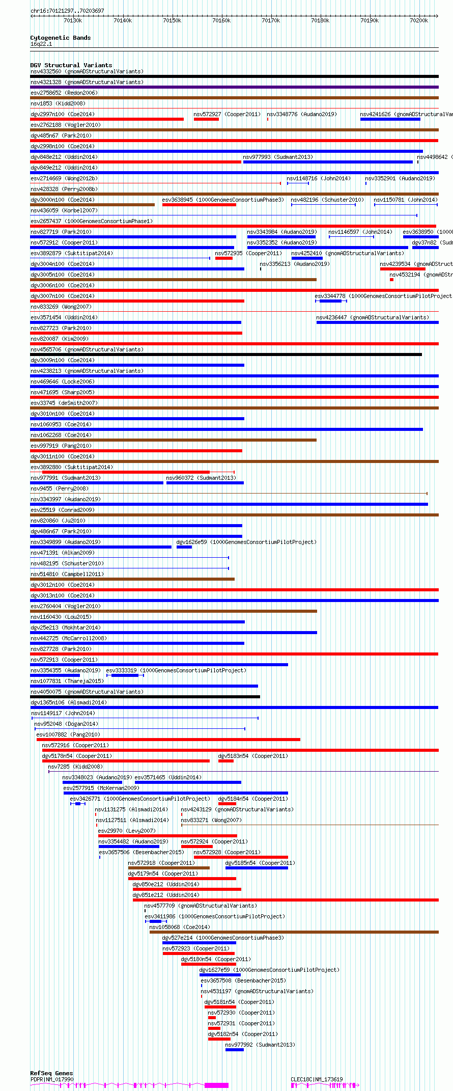 Variant DetailsVariant: dgv1365n106Internal ID | 20160722 | Landmark | | Location Information | | Cytoband | 16q22.1 | Allele length | Assembly | Allele length | hg38 | 82401 | hg19 | 82401 |