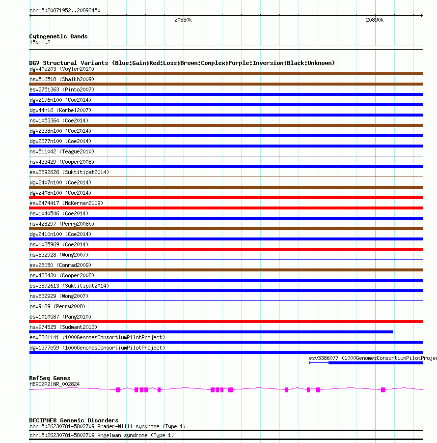 Variant DetailsVariant: dgv1377e59| Internal ID | 22762597 | | Landmark | | | Location Information | | | Cytoband | 15q11.2 | | Allele length | | Assembly | Allele length | | hg38 | 20499 | | hg19 | 20499 | | hg18 | 20499 |