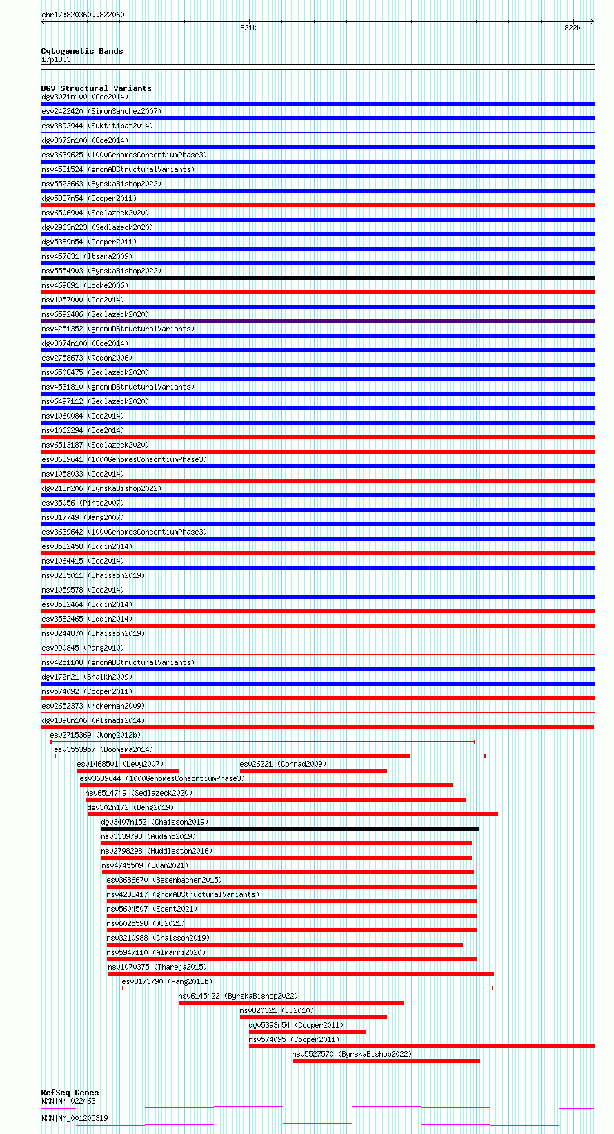 Variant DetailsVariant: dgv1398n106| Internal ID | 22795226 | | Landmark | | | Location Information | | | Cytoband | 17p13.3 | | Allele length | | Assembly | Allele length | | hg38 | 1701 | | hg19 | 1701 |