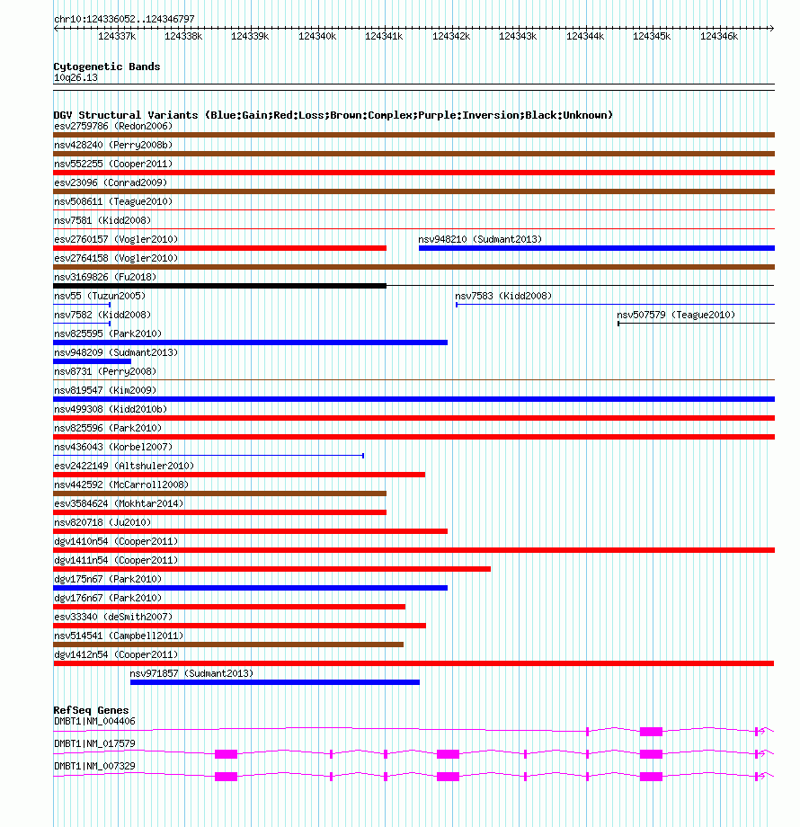 Variant DetailsVariant: dgv1412n54| Internal ID | 22769307 | | Landmark | | | Location Information | | | Cytoband | 10q26.13 | | Allele length | | Assembly | Allele length | | hg38 | 10746 | | hg19 | 10746 | | hg18 | 10746 |