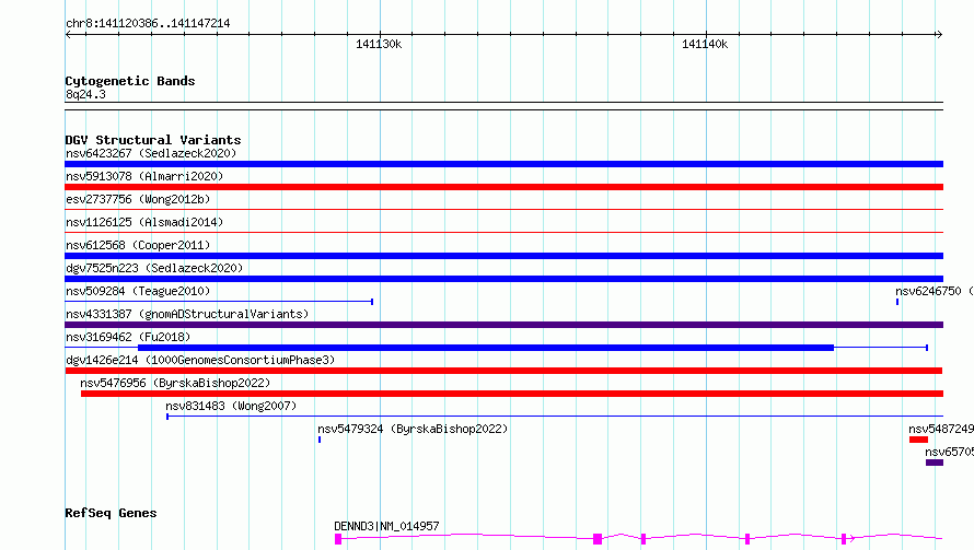 Variant DetailsVariant: dgv1426e214| Internal ID | 22757320 | | Landmark | | | Location Information | | | Cytoband | 8q24.3 | | Allele length | | Assembly | Allele length | | hg38 | 26829 | | hg19 | 26829 |