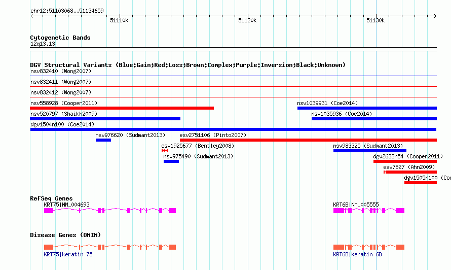 Variant DetailsVariant: dgv1504n100| Internal ID | 22787591 | | Landmark | | | Location Information | | | Cytoband | 12q13.13 | | Allele length | | Assembly | Allele length | | hg38 | 31592 | | hg19 | 31592 | | hg18 | 31592 |