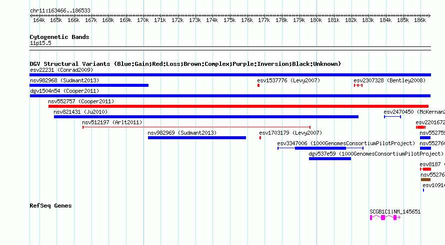 | | Variant Type | CNV gain | | Copy Number | | | Allele State | | | Allele Origin | | | Probe Count | | | Validation Flag | | | Merged Status | M | | Merged Variants | | | Supporting Variants | nsv552756, nsv552758 | | Samples | | | Known Genes | LOC653486, SCGB1C1 | | Method | SNP array | | Analysis | Illumina SNP array copy number analysis | | Platform | Not reported | | Comments | | | Reference | Cooper_et_al_2011 | | Pubmed ID | 21841781 | | Accession Number(s) | dgv1504n54
