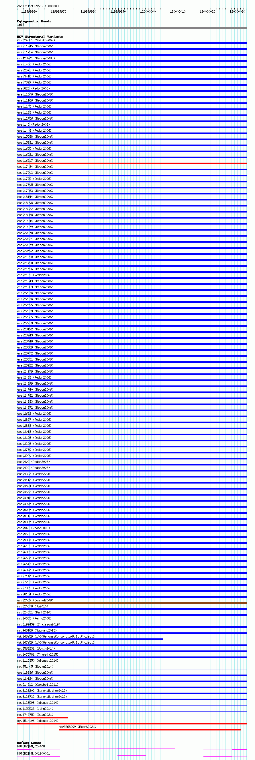 Variant DetailsVariant: dgv151n106| Internal ID | 22793979 | | Landmark | | | Location Information | | | Cytoband | 1p12 | | Allele length | | Assembly | Allele length | | hg38 | 77 | | hg19 | 77 |