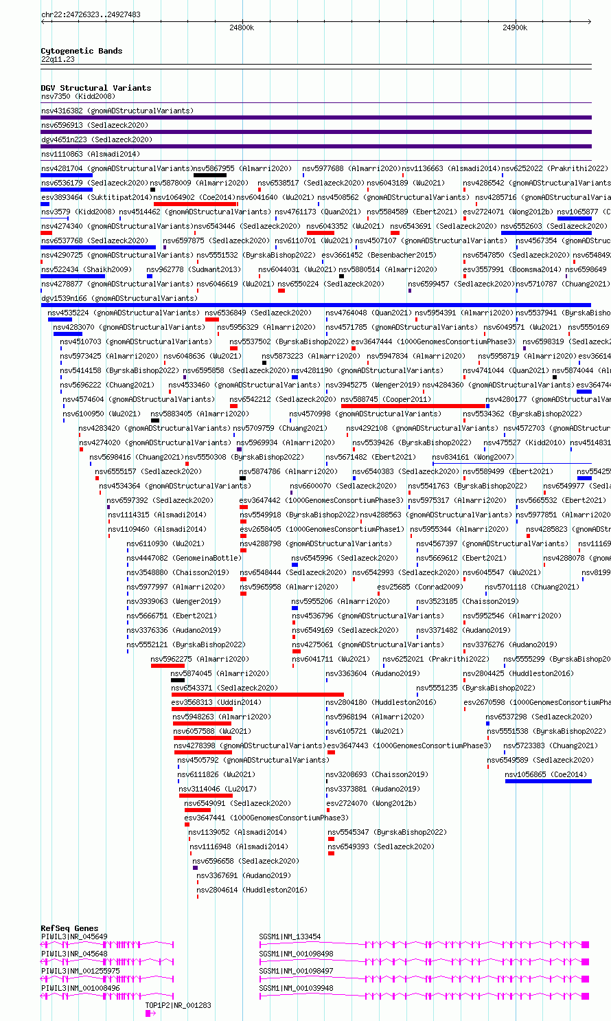 Variant DetailsVariant: dgv1539n166 | Internal ID | 22801438 | | Landmark | | | Location Information | | | Cytoband | 22q11.23 | | Allele length | | Assembly | Allele length | | hg38 | 201161 | | hg19 | 201161 |