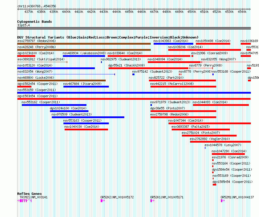 Variant DetailsVariant: dgv1583n54| Internal ID | 22769478 | | Landmark | | | Location Information | | | Cytoband | 11p15.4 | | Allele length | | Assembly | Allele length | | hg38 | 185589 | | hg19 | 185589 | | hg18 | 185589 |