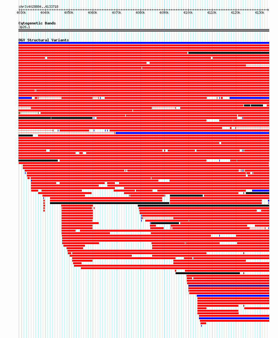 Variant DetailsVariant: dgv1593n166 | Internal ID | 22801492 | | Landmark | | | Location Information | | | Cytoband | 3p26.1 | | Allele length | | Assembly | Allele length | | hg38 | 104835 | | hg19 | 104835 |